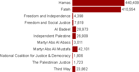Total number of votes per faction on the list level