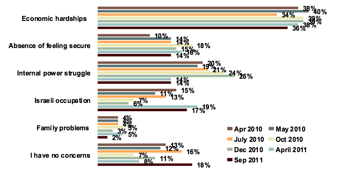 Figure 2 : The main reason for feeling concerned (April 2010 - September 2011)