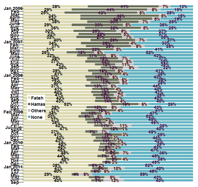 Figure 8 : Support or oppose a peace settlement with Israel (January 2006 - September 2011)