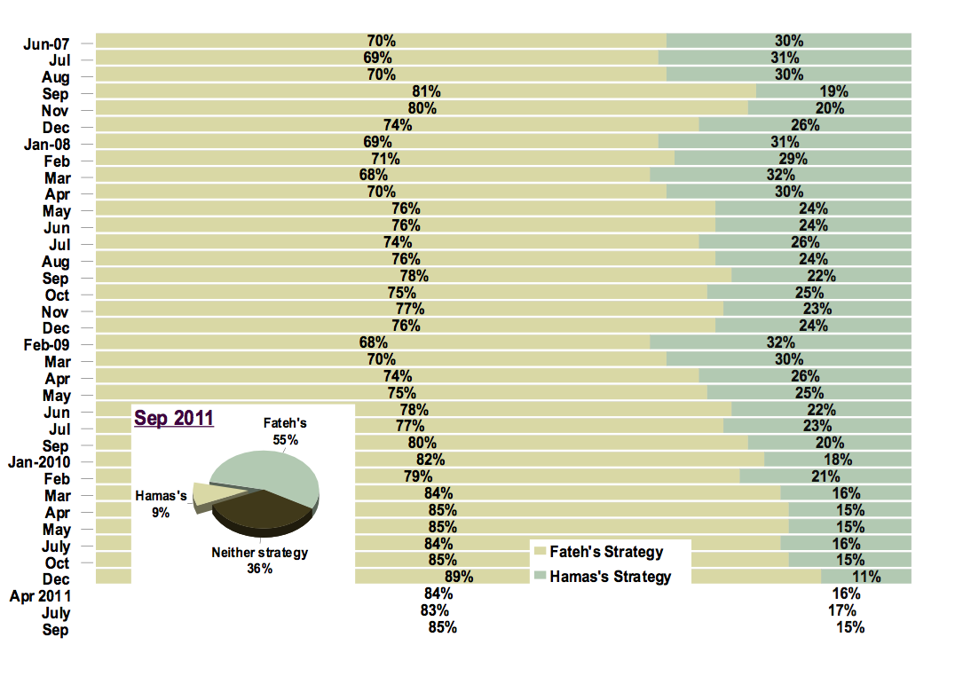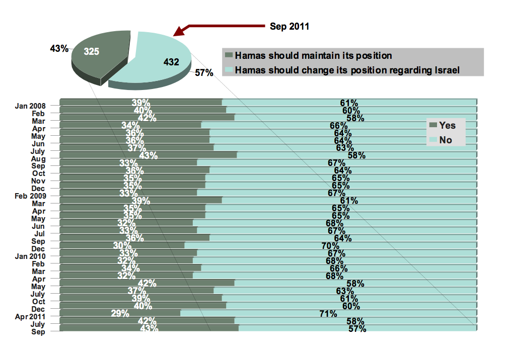 Figure 9: Attitude about whether Hamas should maintain its position on the elimination of Israel (January 2008 - September 2011)